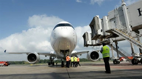 | Un Airbus A350-900 flambant neuf arrive à Singapour. |