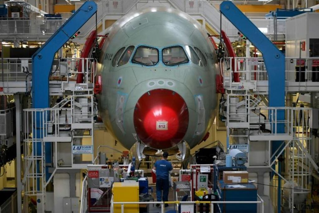 | Sur le site d'assemblage de l'Airbus A350 à Colomiers, près de Toulouse, le 9 décembre 2022. |