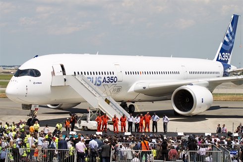 | Le vol réussi de l'A350 le 14 juin à Toulouse (Sud-Ouest de la France) et le survol du salon aéronautique du Bourget permettront à Airbus de tenir la vedette. |