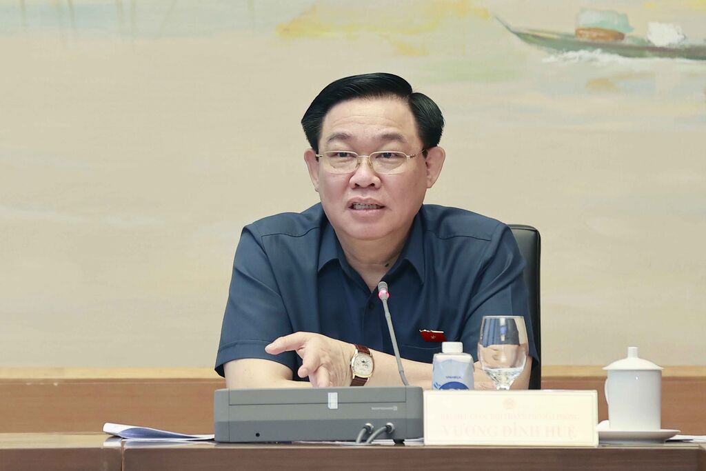 | Le président de l'Assemblée nationale du Vietnam, Vuong Dinh Huê, lors de la séance de travail sur le projet de loi des télécommunications (amendée). |
