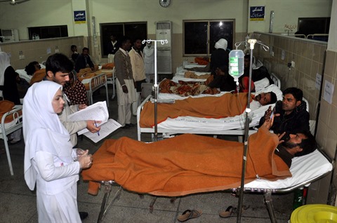 | Le traitement pour des malades pakistanais après avoir consommé une liqueur toxique fabriquée par des résidents à la veille de Noël, le 27 décembre. |