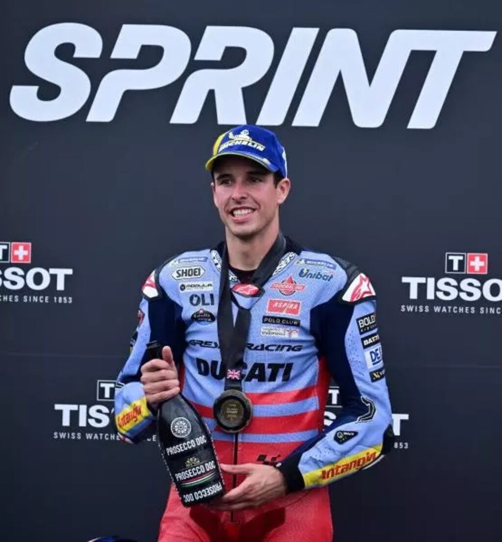 | L'Espagnol Alex Marquez (Ducati-Gresini) après sa victoire lors de la course sprint du Grand Prix Moto de Grande-Bretagne sur le circuit de Silverstone le 5 août. Photo : AFP/VNA/CVN |