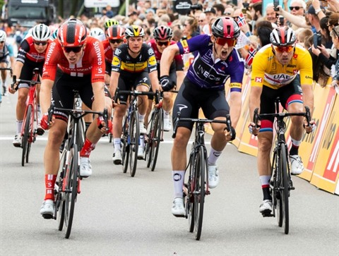 | Le Norvégien Alexander Kristoff (droite) remporte le Tour de Norvège le 2 juin. |