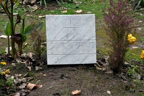 | La tombe d'un des moines français assassinés durant la guerre civile en Algérie dans les années 1990, le 28 novembre au monastère de Tibéhirine, à environ 80 km d'Alger |