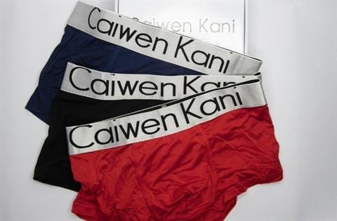 | Des sous-vêtements imitant la marque Calvin Klein, vendues en Chine sous le nom de "Caiwen Kani", le 6 novembre 2018. |