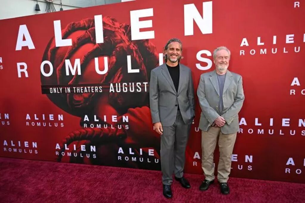 | Le réalisateur uruguayen d'"Alien: Romulus" Fede Alvarez (gauche) et le réalisateur britannique Ridley Scott lors de l'avant-première du film au TCL Chinese Theater de Hollywood, en Californie, le 12 août. |