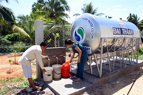 Récemment, la ville a approuvé le projet d’investissement, de développement et de gestion du système d’approvisionnement en eau courante dans le district de Cu Chi. Pleinement opérationnel en 2019, le montant d’investissement prévisionnel se monte à 4.300 milliards de dôngs. Pour la première phase (d’ici fin 2016), la Compagnie par actions des infrastructures des eaux Saigon (Saigon Water) compte investir 2.000 milliards de dôngs dans la construction d’un réseau de conduites souterraines acheminant de l’eau depuis l’usine de Kênh Dông au bourg de Cu Chi et ses dix communes voisines, mais aussi dans la modernisation des stations de traitement des eaux souterraines. Ce projet devrait profiter à 98.400 ménages. Pour la deuxième et dernière tranche des travaux (2016-2019), Saigon Water injectera 2.300 milliards de dôngs supplémentaires dans le perfectionnement du réseau d’approvisionnement en eau courante.
