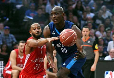| Le Français Amara Sy (droite) lors du All Star Game, le 29 décembre à Paris-Bercy. |