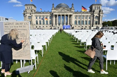 | Allemagne : 13.000 chaises devant le Reichstag pour les migrants à Lesbos. |