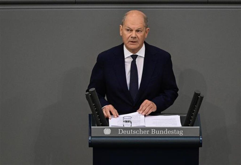 | Le chancelier Olaf Scholz prend la parole lors d'une session de Bundestag allemand à Berlin, le 6 juin 2024. |