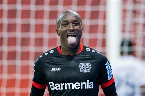 | L'attaquant français Moussa Diaby marque le 3e but pour Leverkusen lors du match de Bundesliga à domicile face à Augsbourg, le 26 octobre. |