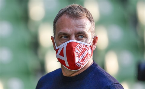 | L'entraîneur du Bayern Munich, Hansi Flick, avant le match de Bundesliga sur la pelouse du Werder Brême, le 16 juin 2020. |