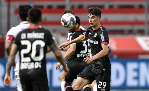 | Le milieu offensif du Bayer Leverkusen, Kai Havertz, lors du match de Bundesliga à domicile face à Mayence, le 27 juin 2020. |