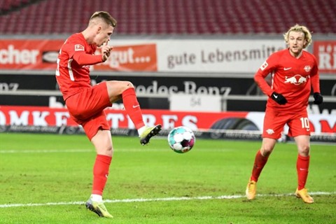 | Le milieu espagnol de Leipzig, Olmo Dani (gauche), marque sur le terrain de Stuttgart, le 2 janvier. |