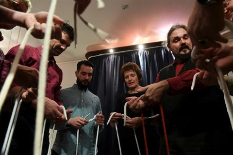 | Des adultes suivant des cours de magie à Pullach près de Munich (Allemagne), le 29 novembre 2018. |