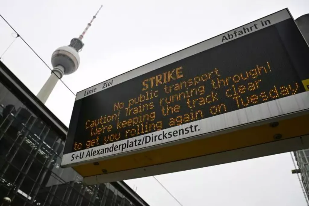| Un panneau annonce une grève générale des transports publics allemands à Berlin, le 2 février 2025. |