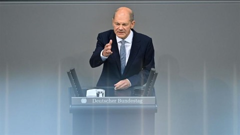 | Le vice-chancelier et ministre des Finances allemand Olaf Scholz, devant le Bundestag à Berlin le 7 septembre. |