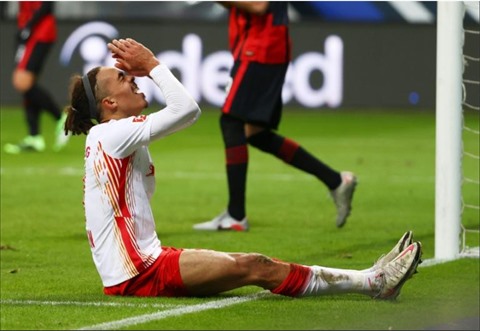 | L'attaquant de Leipzig Yussuf Poulsen lors d'un match à Francfort, le 21 novembre 2020. |