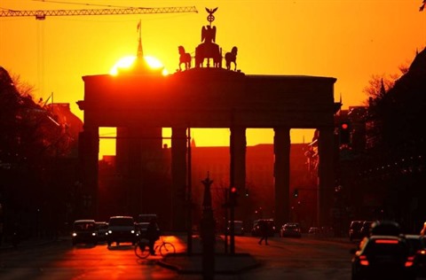 | La porte de Brandebourg, à Berlin, le 1er avril. |
