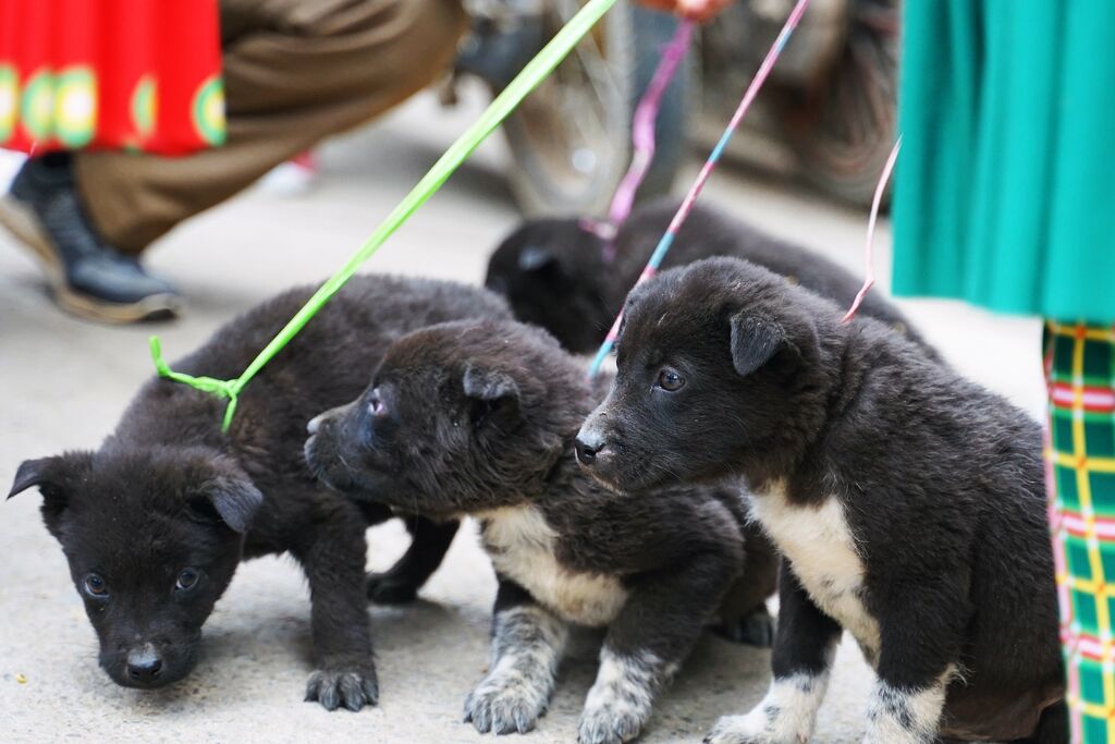 Dès 04h00 du matin, le marché s’anime avec le bruit des véhicules et des discussions. Ici, les animaux destinés à la vente, tels que les chiens, les cochons et les poules, ne sont pas enfermés dans des cages comme dans d’autres marchés des plaines, mais transportés sous l’aisselle ou tirés avec une corde. Les buffles et les bœufs, quant à eux, arborent des clochettes autour du cou, attendant sagement les acheteurs à proximité de leurs propriétaires.