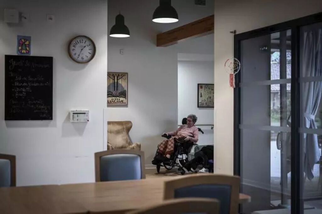 | Une patiente dans une structure expérimentale pour personnes atteintes de la maladie d'Alzheimer, à Dax, en France. |