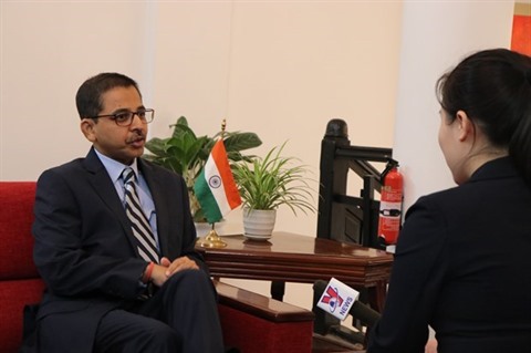 | L'ambassadeur d'Inde au Vietnam, Pranay Verma, lors d'une interview à une correspondante de l'Agence Vietnamienne d’Information, le 2 février à Hanoï. |