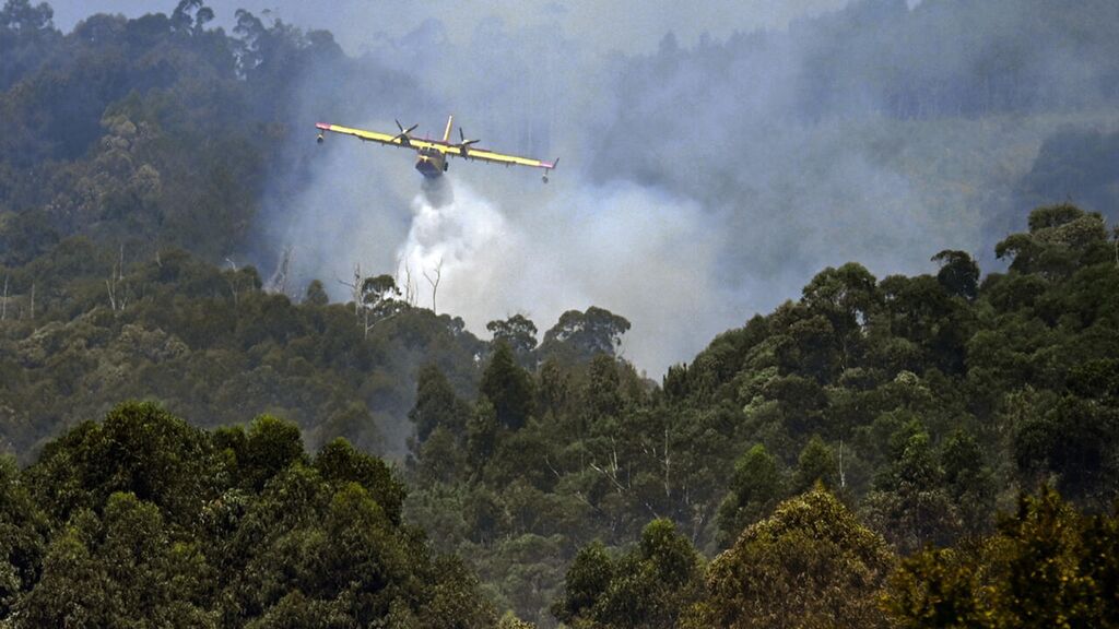 | Un avion combat un incendie près du village de Vilaboa, dans le Nord-Ouest de l'Espagne le 22 août. |