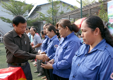 | Remise des cadeaux à des ouvriers en situation difficile dans la province de Vinh Long (Sud). |