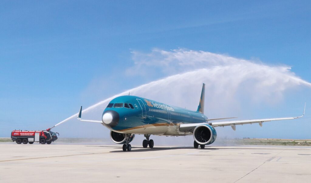 | Un avion de Vietnam Airlines à l'aéroport de Cam Ranh, province de Khanh Hoà (Centre). |