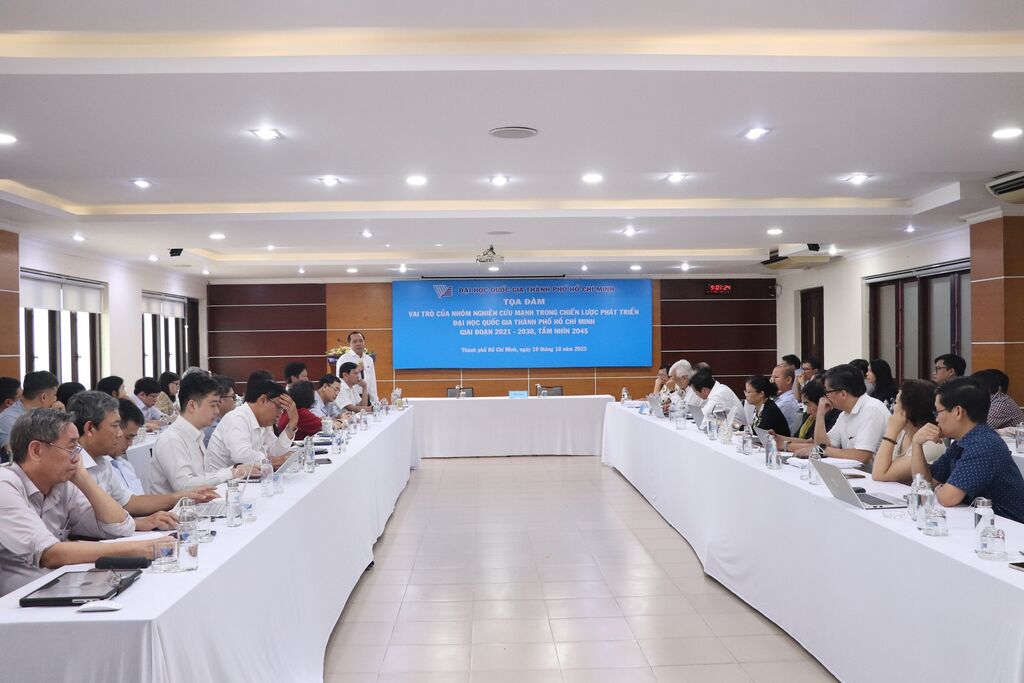 Actuellement, la VNU-HCM compte plus de 100 groupes de recherche dans des domaines allant des sciences naturelles, des sciences sociales au génie technologique. Parmi eux, il existe dix groupes de recherche dits “forts” qui obtiennent des résultats élevés en matière de recherche et de formation, se rapprochant des critères des universités de recherche avancée.
