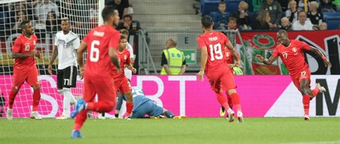 | Le défenseur péruvien Luis Advincula (N°17) vient d'ouvrir le score face à l'Allemagne en match amical, le 9 septembre à Sinsheim. |