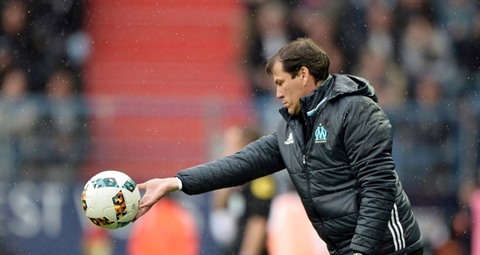 | L'entraîneur de L'Olympique de Marseille, Rudi Garcia, lors du match face à Caen au stade Michel d'Ornano, le 30 avril. |