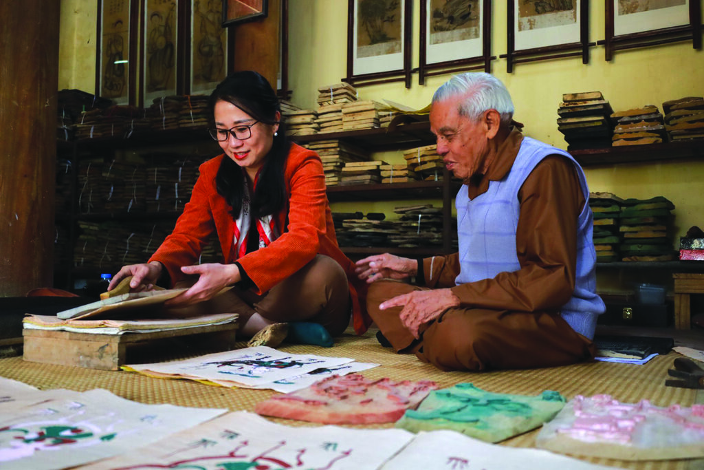 Nguyên Thi Huu a effectué de nombreux voyages au village de Dông Hô, district de Thuân Thành, province de Bac Ninh (Nord), pour rencontrer l’artisan chevronné Nguyên Dang Chê et faire des recherches sur ces estampes populaires si spéciales. Peu à peu, elle est devenue proche de la famille de cet artisan, qui a consacré toute sa vie à la préservation d’estampes de Dông Hô.