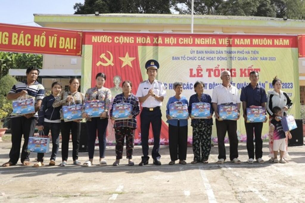 À cette occasion, le Commandement de la région 4 des Garde-côtes vietnamiens a remis des cadeaux à 50 familles de personnes méritantes, familles de pêcheurs, membres de l'Union des femmes en situation difficile et à 30 étudiants démunis. Il a également coopéré avec le journal Nguoi lao dông et l'hôpital Hung Vuong à Hô Chi Minh-Ville pour faire don de 400 drapeaux nationaux et de 20 sacs médicaux à des ménages disposant de moyens de pêche dans la zone du port de Hon Tre, commune de Tiên Hai.