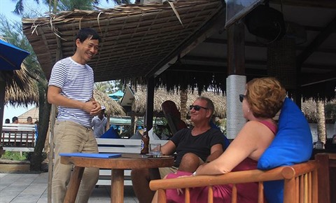 | Lê Ngoc Thuân (gauche) fut l’un des pionniers dans le développement du "homestay" à An Bàng, province de Quang Nam (Centre). |