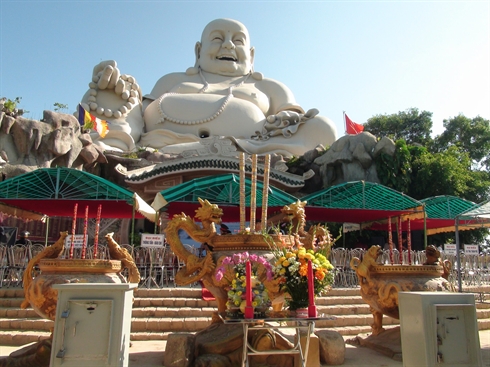 | La statue de Matreya sur la montagne Câm qui a été reconnue comme la plus grande d'Asie en zone montagneuse. |