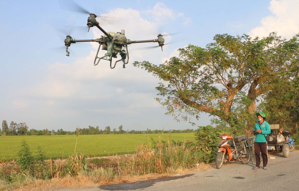 | Les agriculteurs d'An Giang (Sud) ont courageusement adopté l'utilisation de drones dans toutes les étapes de la production agricole, notamment pour le semis, l'épandage d'engrais et la pulvérisation de pesticides. |