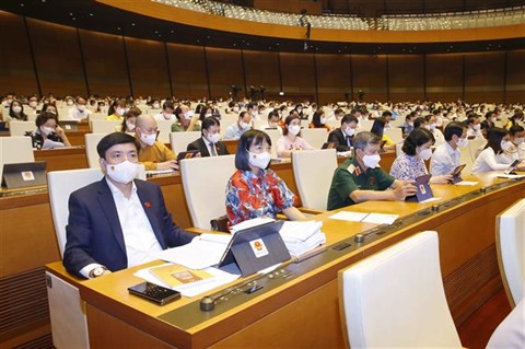 | Des députés lors de la première session de la XVe législature de l'Assemblée nationale, le 22 juillet à Hanoï. |