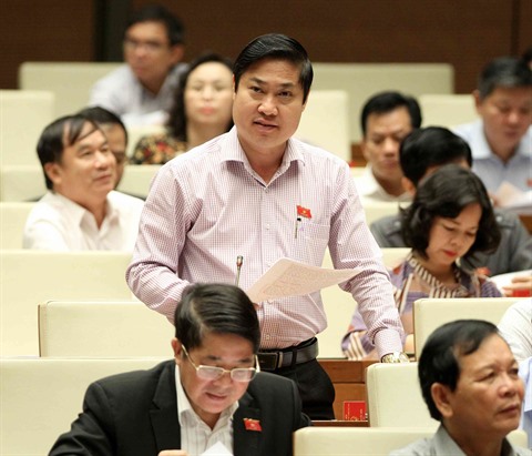 | Le député de la province de Quang Nam (Centre), Phan Thai Binh (debout), a discuté, le 16 novembre, du projet de loi sur la prévention et la lutte contre les effets néfastes de l’alcool. |