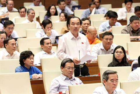 | Le député de la province Bac Giang, Ngô Sach Thuc, prend la parole dans la 7e session de l’Assemblée nationale de la XIVe législature. |