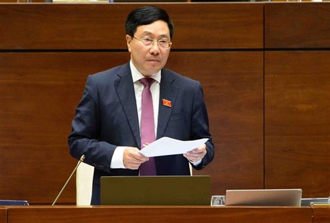 | Le vice-Premier ministre permanent Pham Binh Minh répond aux questions devant l'Assemblée nationale, le 9 juin. |
