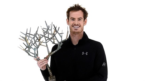 | Andy Murray pose avec le trophée de Paris-Bercy, le 6 novembre. |