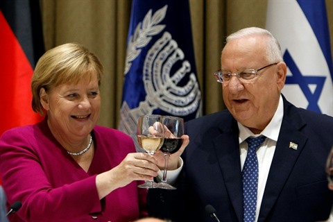 | La chancelière allemande Angela Merkel et l'alors président israélien Reuven Rivlin à Jérusalem, le 4 octobre 2018. |