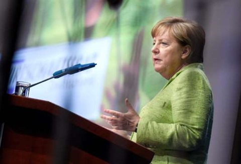 | La chancelière allemande Angela Merkel, lors d’un congrès économique organisé par son parti l’Union chrétienne-démocrate (CDU), le 27 juin à Berlin. |