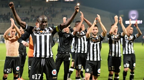| Les joueurs angevins fêtent leur victoire contre Bastia, le 3 octobre à Angers. |