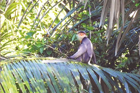 | Un Douc à pattes grises photographié dans le district de Nui Thành, province de Quang Nam (Centre). |