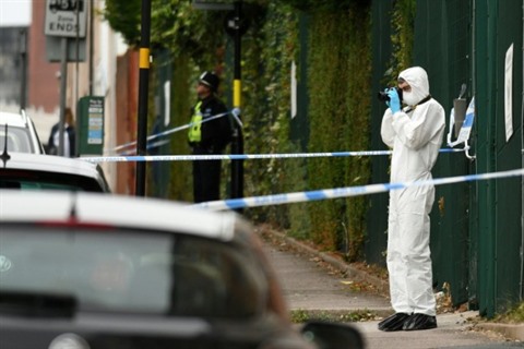 | Un agent de la police scientifique recueille des indices le 6 septembre dans une rue de Birmingham, deuxième ville d'Angleterre, après que plusieurs personnes ont été poignardées. |