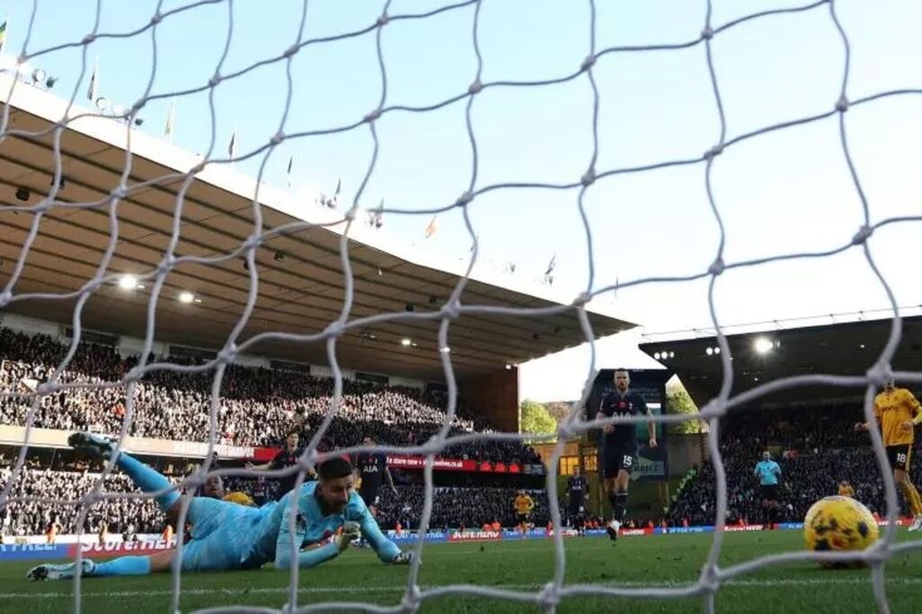 | Le gardien de Tottenham Guglielmo Vicario encaisse un but à Wolverhampton le 11 novembre. |