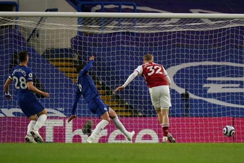 Emile Smith-Rowe a profité d'une grosse erreur du milieu des Blues Jorginho, pour ouvrir le score à la 16e minute, après une passe en retrait vers son gardien qui n'était pas dans son but.