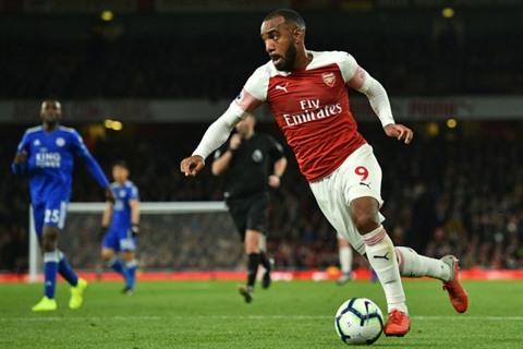 | L'attaquant français d'Arsenal Alexandre Lacazette contre Leicester en Premier League, le 22 octobre à Londres. |